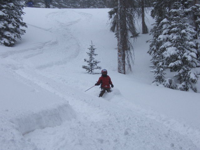 While the parents and short folks soaked at the hot springs on the 29th, I returned to ski by myself in some of the more interesting terrain towards the Alberta lift. There was an additional 5" overnight and the single digit temperatures kept the snowack very dusty. There are plans for more development at Wolf Creek which has generated a lot of controversy. It certainly exceeded my expectations.