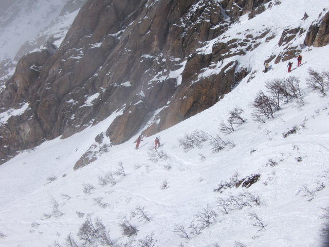 We arrived in Buenos Aires (BsAs) on August 21 and took an overnight bus to Bariloche. The 19 hour bus ride is very relaxing and allows us to adjust to the time difference and recoup from the fatigue of air travel, plus you are served numerous meals and can sleep in 1st class lay-down seats with movies and drinks served. Arrived in Bariloche and stayed with the family we lived with in 2005. We woke to light snow showers and drove to Catedral which is the largest ski resort in Argentina. With a base at 3150 ft, it’s rather low but this year has plenty of snow. The resort received 2-5 inches of new powder, but the top half of the mountain was a whiteout. We skied a few hours then decided to cruise the lower slopes near the trees and have a short day. We returned to Catedral on August 23 to clear and sunny skies. For comparison purposes, the ski area is larger than any area in the PNW except Whistler. At the furthest lift on climbers left, we noticed a ski patroller skiing toward the base of La Laguna which has access to some challenging backcountry and sidecountry terrain. The ski patroller stopped below a rocky chute which had a snowboarder sitting at the top – either uncomfortable with the descending chute or perhaps injured. We were on the chair so I never did see the outcome. Too bad, would have been interesting to see how the snowboarder descended. After a few cruisers in packed powder, I found a descent route towards the new Nubes quad and its enormous bowl. We had to hike a short distance and as we reached the descent point I dropped my skis and watched one ski slip over the lip into the steep bowl. This was an “oh, shit” moment followed by “please, let me be lucky”. After descending about 500 VF the ski flipped and stopped just before another 1500VF bowl. “Thank you, thank you, thank you”! As I started plunge stepping towards my ski a woman skied over to my ski and started to place it vertical in the snow. I immediately had visions of it falling over and starting another journey downwards, I kept shouting ‘momento’ and was able to run to her and grab my ski and thank her before anything else happened. Geez, what a dumb ass mistake I made. The rest of the day was glorious cruising in packed powder with views of the Andes towards Chile and the lake near Bariloche. Catedral has a mix of gondolas; a high speed six-pack and quads; with doubles and pomas accessing the more challenging terrain. With Bariloche within 20 minutes of the mountain, you have a resort that can provide entertainment for days. Plus the touring options are extensive with numerous huts nearby. Lift tickets were 105ARP, about $35 USD. If you are planning a ski trip to Argentina, you definitely should plan to spend a few days or a week here especially if you have your touring gear.