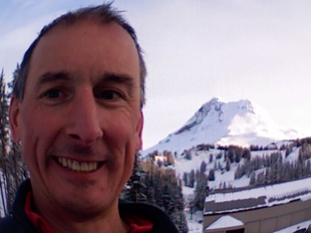 What is missing in steeps are more than made up in views. This had to be the most spectacular view of Mt Hood I have ever seen! Unfortunately, my camera battery is dead-I took this goofy shot using my mac's camera.