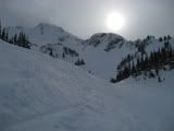 Andy, Todd and I headed up north for a mini-ski vacation in Canada with this being Andy and Todd's first trip to Whistler. The weather was beautiful sunny with about 10 inches of fresh when we arrived (it was nice to see the sun after not for so long:)) The first day we spent mostly on Blackcomb and rode the Glacier Express and Jersey Cream chairs, with a lot of runs off of Spanky's ladder. Good stuff with some nice double blacks and steeps - things we don't get down here in Oregon as much. Below is Todd on the backside of Blackcomb....