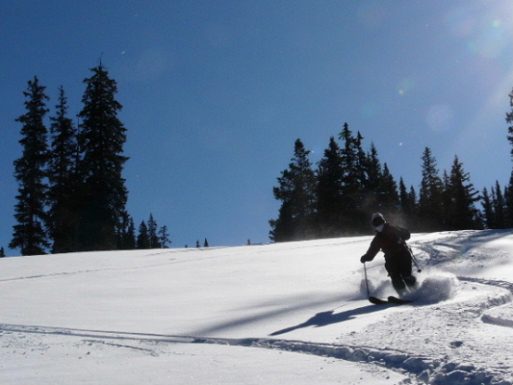 March 3 was a brilliant sunny day. The ski report was 4” of new and the temperature was -3 F. It was an “if you own it, you wear it” kind of day. Our expectations were high. The winds were moderate, but it was obvious that yesterday’s upslope winds had hammered most slopes. The treed runs off the Garfield chair were only slightly affected, and we enjoyed 4 untracked runs before the locals arrived. We found most slopes were wind hammered and the groomers were the most enjoyable. After a few hours, we decided to head towards our friend’s home near Breckenridge and recharge our bodies in their hot tub. Monarch is a small area with great terrain and great grooming. This is the second year in a row that we have visited with a storm day followed by a sunny day. Good karma.