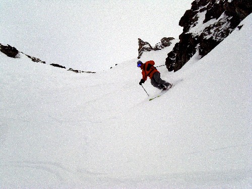 We hired a guide the 2nd day (5 total in the group, put together by the Alpine Center), which was expensive but well worth it. We skied 30-40 degree couloirs all day, first tracks every run, mostly in the Gornergrat area. The visibility was terrible and there were no views, but it had snowed a foot overnight, and unlike the bullet-proof ice on the pistes the day before, every run was at least boot top and sometimes bottomless powder. We never would have found the places our guide took us on our own. We had a great time!