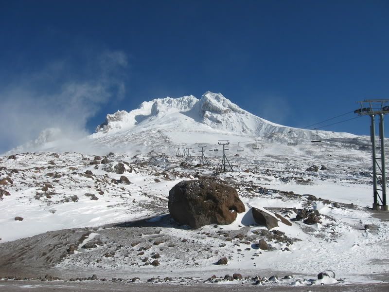 There were a couple days of snow flurries and sub-freezing temperatures. The run on Palmer Glacier had some windblown snow in spots on top of frozen. It's like velvet if you find the good parts (near the lift).