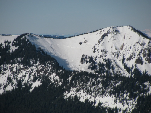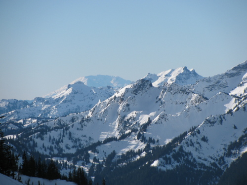 From the top of rex I think that I saw all 5 volcanoes, and you could actually see the olympics as well towering over the fog of the sound. There was also an impressive slide east across the river/410 towards rainier visible from the summit house area (slide pic below.)