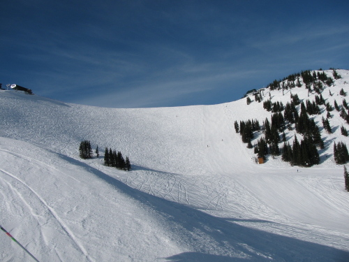 Crystal today 1/18 was glorious spring skiing! By late afternoon the frontside had softened enough for slushy bumps. I like slushy bumps, always have , always will.