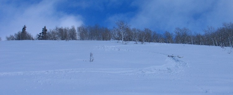 Virtually every run all day was in untracked powder. I wish I could say that it was light and fluffy blower. In fact, the locals, whining, were calling it cascade concrete but that was an exaggeration. It snowed until mid afternoon. Visibility was a challenge all day and so I was mostly in the trees. Did clear up some places for a couple of minutes.