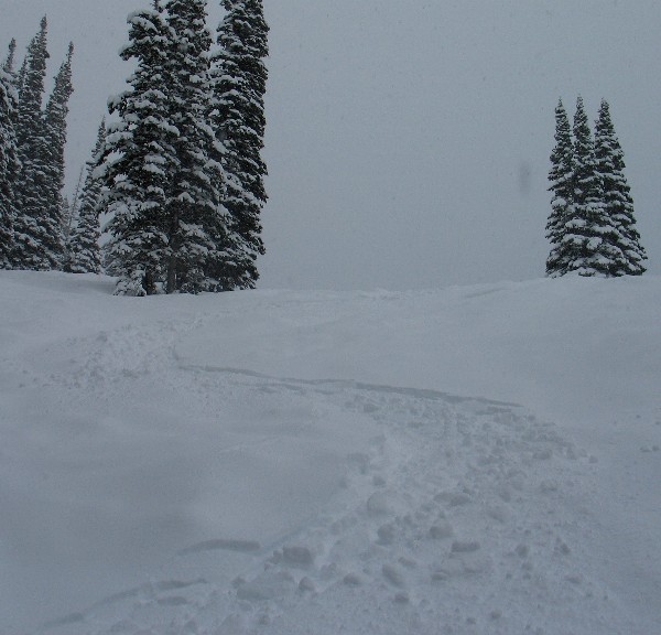 Best runs were on Scree Face on Mount Millicent. Steep enough to power through the heavier snow. Too snowy to take many pictures.