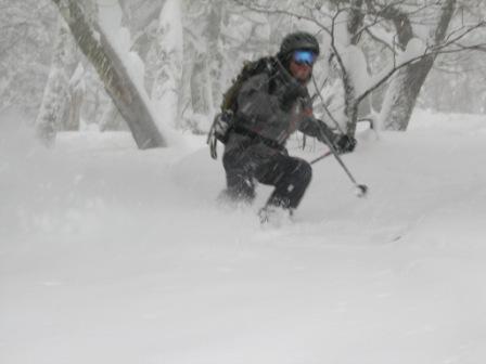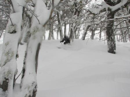 After a few false starts( I had to get my skis re-waxed as the summer wax I had on was sticky) we managed to eke out a good day's powder skiing in some tall trees near the lookers right of the resort.