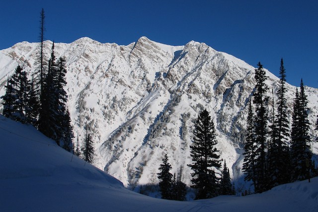 A few years ago, Jill and I toured to the top of that same slope. We approached from the treed ridge "lookers right". I remember standing at the top and the sun warming the slope and deciding to backoff and not ski the slope. We skied our climbing route in a more northly aspect in boot deep powder.