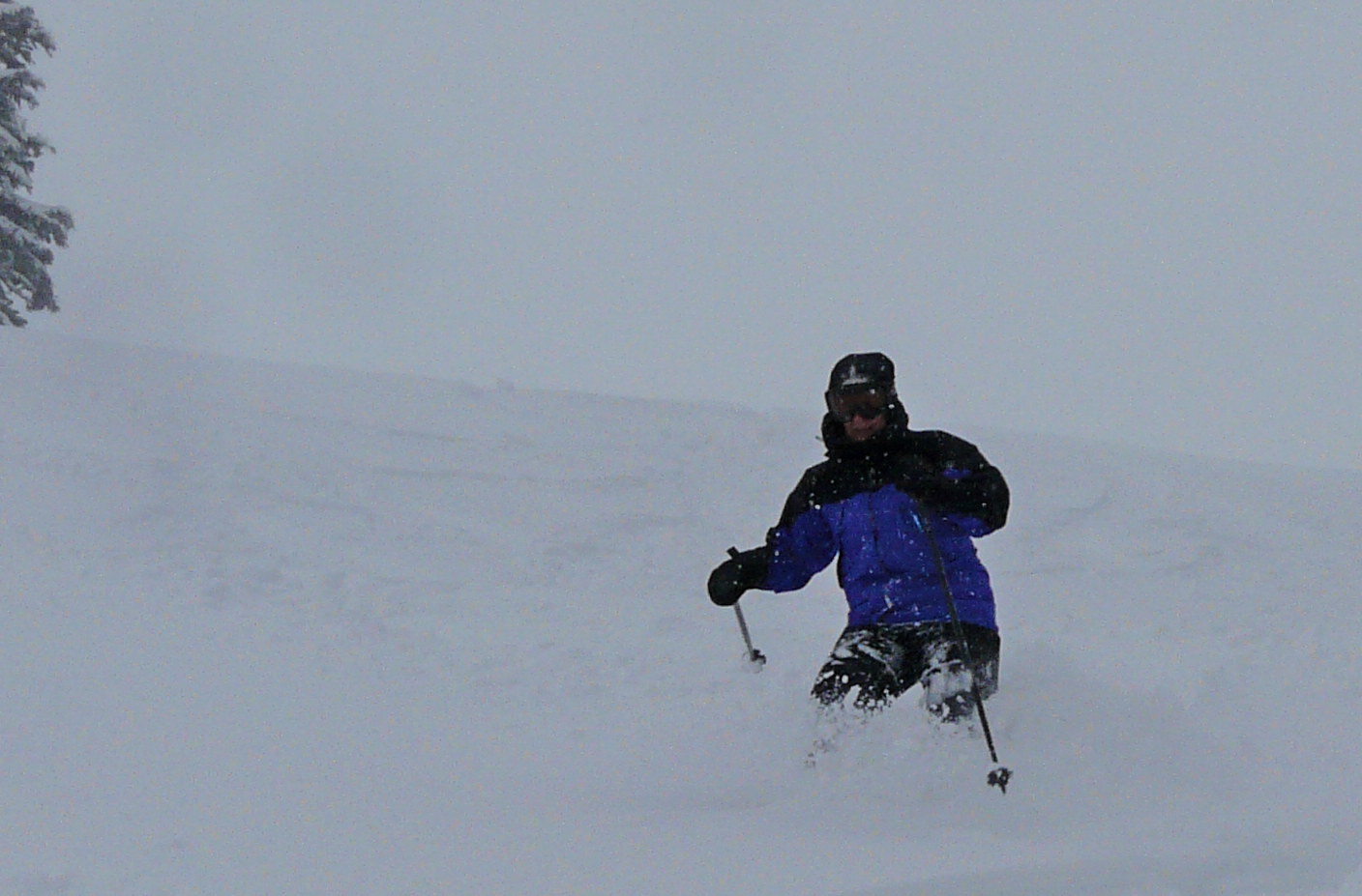 It was a 6 plus hour drive from Silver Star to Mt. Baker, and the road was dry the entire way. The parking lot at the White Salmon lot at Baker was bare and dry. As we went to bed, I could see light snow showers starting. I woke up around 4am and looked out the window and could see about 6” atop the vehicle near us. Oh boy, oh boy, oh boy! The morning snow report was 10” of new and 28 F. OK, it’s going to be a morning powder event, and then it will probably turn to slush. Jill bought her senior ticket, I picked up a freebie, and we stood in line with a healthy crowd of 30 waiting for the start. At the top of C-7, the youth darted to chair C-5 for the steeper lines. We went to C-8. For 2 hours, we enjoyed untracked lines on the moderate terrain off C-8. By 11am, the temperature began to rise, the snow became thicker, and we spent another hour exploring various terrain around the area finding pockets of untracked. By noon, the snow was heavy and dripping off the lifts, and it was time to go. Here’s where I screwed up. I thought I would check the snow reports around WA on Ski Tiger. It appeared that we made the right choice UNTIL I foolishly looked at the BC resorts. I couldn’t believe it-Big White and Silver Star each received 12” new overnight. Geez !