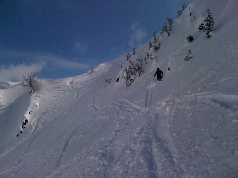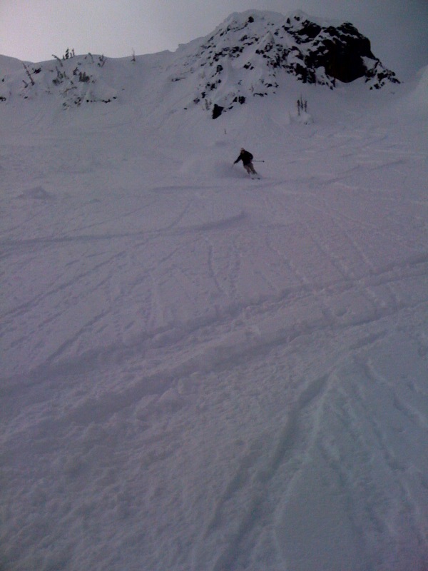 That might explain the impact crater we came across out there today. Looked like someone did a human cannonball landing onto the slope. Made my ski cut across the top of that slope seem superfluousHad a fine young man announce he was going to do a back flip post 3way into Silver Basin. I think I said "make me proud". He did and aside from his helmet falling off and duffing the landing it was a great thing to witness.