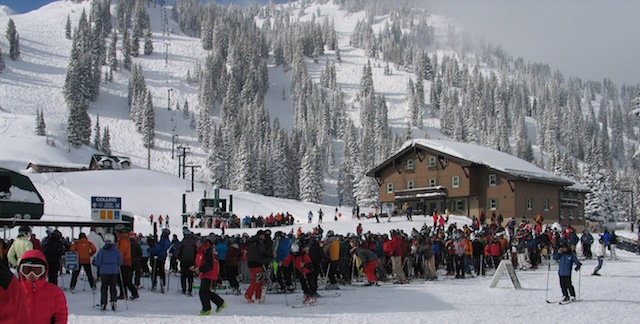 The rope tow line was 20+ minutes and the lift line on Sunshine, 45 minutes.