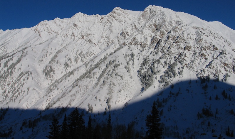 The top picture is of the mountain ridge across from Snowbird. Despite the considerable avi danger, there were lots of tracks from backcountry skiers by the end of the day.