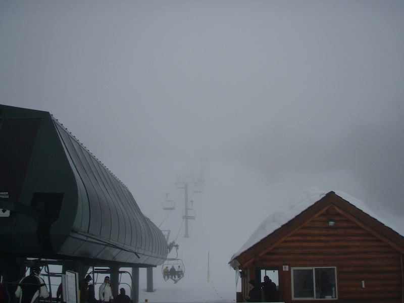 Gave Crystal at try today. Our hopes of lasting long enough for the weather to dry up didn't work out. A drizzly rain from bottom to top, pea soup fog, and off piste being frozen glop made for tough conditions. The snow on groomers Iceberg and Luckyshot was actually OK but between goggles being covered in rain/fog instantly and snow being nearly invisible in the fog, any fun was cancelled. We lasted an hour and with no sign of the fog lifting, we bailed. Although I was dry on the inside, a dripping mess on the outside.