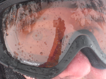 ...a classic pineapple dealt up wind/crap/snow/rain/concrete that made for crummy conditions saved only by big rocker...although rex/gvalley was open from morning until 1 pm for those who enjoy near-whiteout conditions, most of the day was spent inventing fun...grubstake + lower bearpits was OK early...no crowds, no lift lines, but plenty of wet slop with forest queen staying open until 4:00 pm (as opposed to yesterday's early closing)...even boondoggle couldn't keep the goods...the bottom gates were unable to check tiks in a reliable manner this morning leading to confusion but it didn't matter since the hill was pretty much empty...