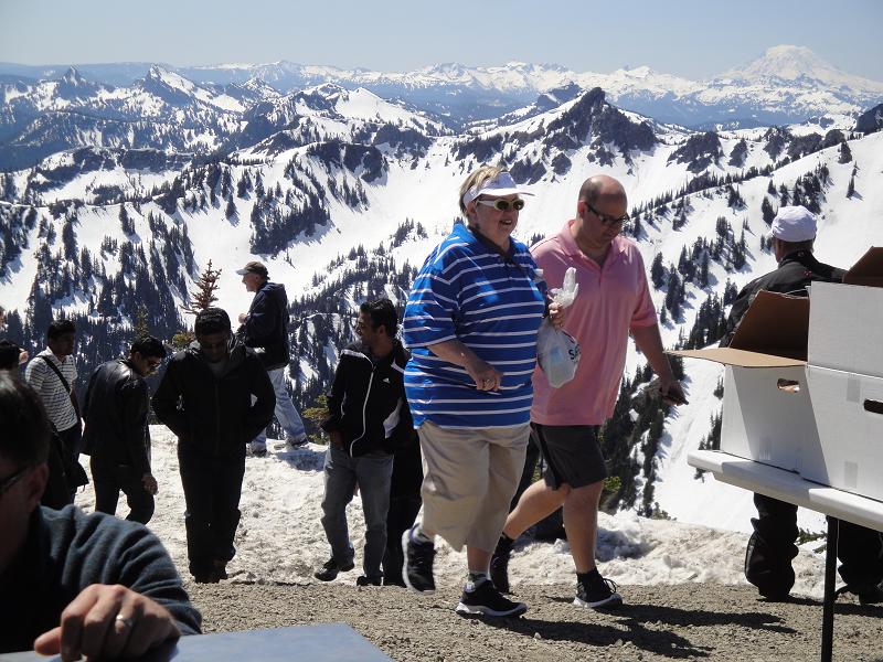 We had a great day on Saturday the 2nd as well but I fear it's coming to an end. I just watched the King5 video from the 4th and the top of Green Valley has lost a lot of snow in just 2 days. If you go next weekend (that's you ddk), I would leave your best skis at home. JD and I had some good runs on Grubstake peak, Snorting Elk bowl, Rinky Dink, West Face (from the top, is that still called West Face?) and the usual assortment of Grubstake, tree run, and well, you know what's there. No purple shorts or Russians I'm sorry to say (if you know what I mean, you know what I mean). There was a lot of foot traffic today so I hope this has been a good business decision for Crystal Mt. and they continue the spring skiing policy in the future. Now were going hiking but are looking forward to November!