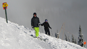 Great day, lots of new especially in Powder Bowl, snow quality up high and shady slopes very sweet – sun (?) baked slopes got impacted before the afternoon clouds and snow showers moved in. Fairly light crowd – but gotta say a very efficient crowd, lots of places cut up very fast. Sloppy seconds were nice and I kinda like soft packed pow bumps – especially with the new love of my life, Brand New Fat (for me) K2 AfterShocks! Great for me ski between the skinny Crossfires and those lovely Coombas. They carve big on the groomers and blow through everything else like its not there, bumps? what Bumps? Coverage is awesome and has improved incredibly in the last few days. Top of HC dropping into PB is almost rock free (will not last but it was great today). Didn’t get into PB as early as I would have liked, but the left overs were deep! Had a lot of fun with the Ferks and my wife today, a very great day. CB lodge had some folks in it, but not much food, soup was the new Cream of Chick with dumplings. Only problem in CB lodge was that I could see my breath while I was in there – no heat, OUCH!. Light crowd, no Northway today (?), but HC was great and South I think opened which was probably very big. Pay lot was almost mid winter big and as usual was early season empty. Saw cars in B lot and C was fairly full. (no Taco Truck yet)