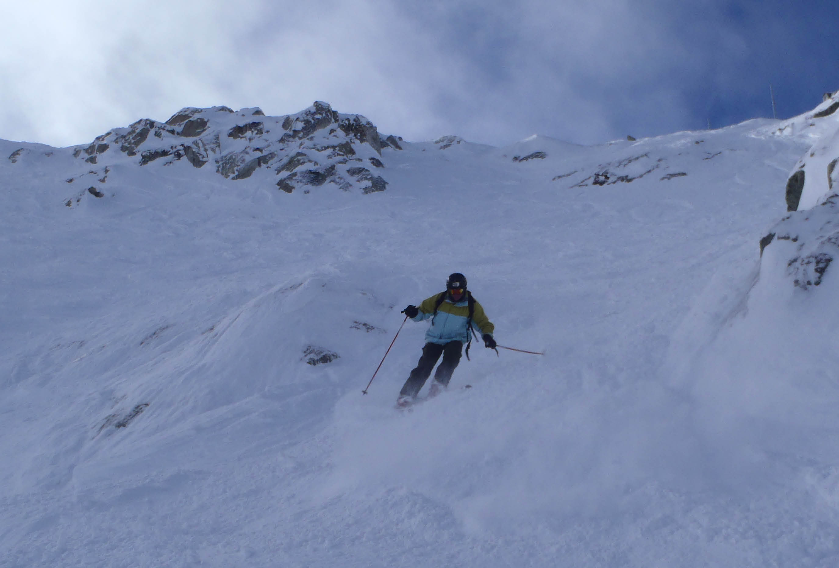 Got back after a week of tremendous skiing at the best resort I've ever skied. The temperature was 14 to 16 every day and it snowed every other day keeping things fresh and soft. We had taken gear and planned on some back country skiing - but the lift skiing was too good for that. Our inbound hikes were on Flute to sample untracked fluff. At an hour per loop with the Symphony lift to help - this was a bargain. Saturday was very crowded but after that never waited more than 10 minutes - usually less. Our only other hiking was getting up Spanky's Ladder to ski Garnet and then Ruby Bowls. We also went "side country" whenever we felt the need for more untracked snow. Photo shows the top portion of Garnet Bowl. Garnet is rated a double black diamond but on soft days it's just easy fun!