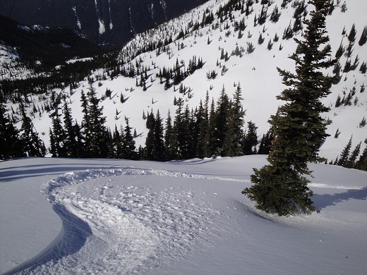 Morning I went on a solo mission and skied some nice north west facing aprons.