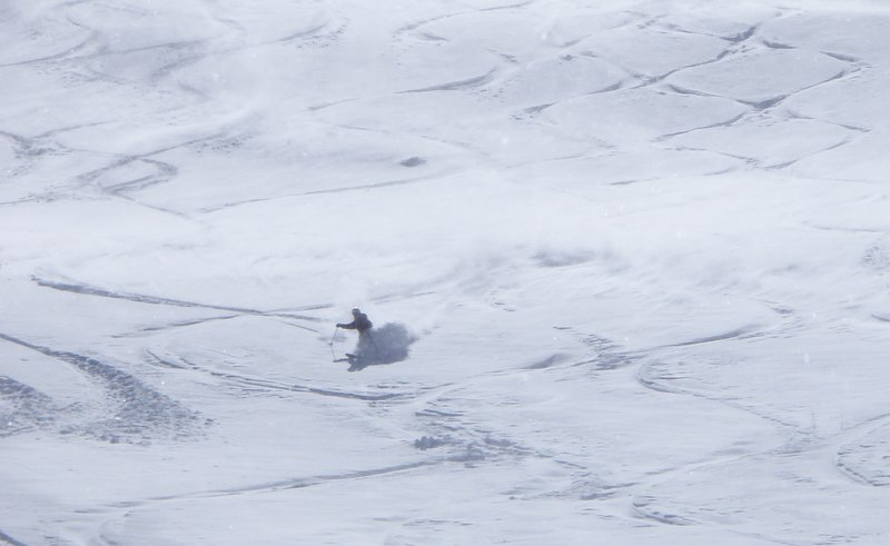 What a day, last day at the Ridge, and we wake up to new snow! About 8-10" out of the wind, and much more than that where it had been wind transported. It was admittedly a little thick in the base area, but from the bottom of the Liberator to the top it was dreamy pow! And of course since it was raining cats and dogs in town no one got out of bed on a Sunday morning, those who did were few. All the runs that required hiking, were still mostly untouched till afternoon. What a fun way to end the season, and this nice little freshet, will extend the hiking as well.