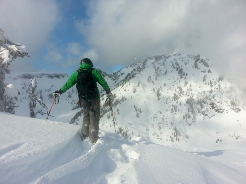 Some notes on snow stability. There was notable soft snow sluffing in several areas. In addition, the skier I was with managed to break loose a 12 inch deep, 75 foot wide slide on a particularly steep, west aspect of Pan Face.