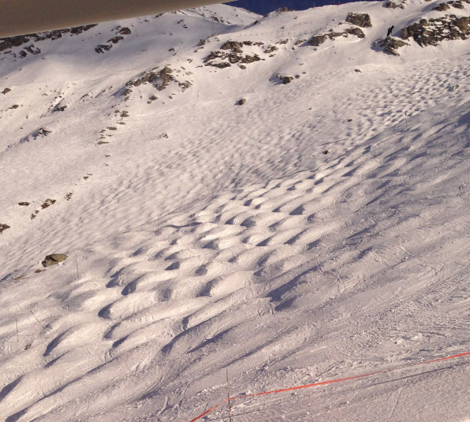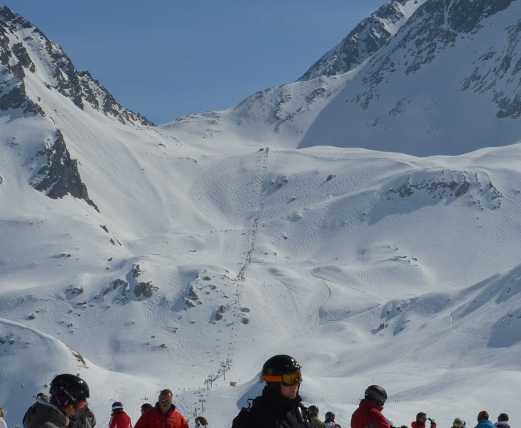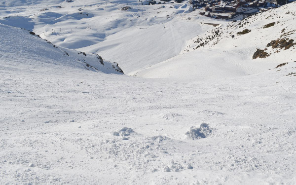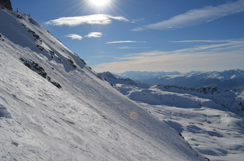 The steeps off the top tram at Les Arcs. This lovely run starts off a black trail and plunges nearly 3,000 feet of steeps and bumps to village 2000