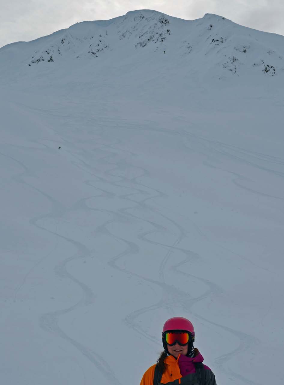 Another good new snow day at Whistler with good Visibility in the morning. Got 3rd and 4th tracks on Pigs Fancy. Best snow was at the bottom! Kinda firm in the regularly cut or blasted chute.