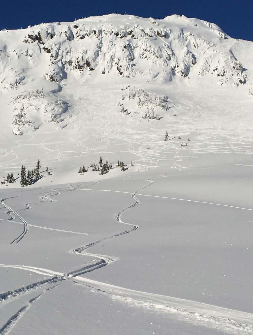 Another surprise few inches plus a surprise Bluebird day made for a great time! All north and east facing steeps skied soft and easy. Enough snow to finally let go and have fun instead of worry about coverage.