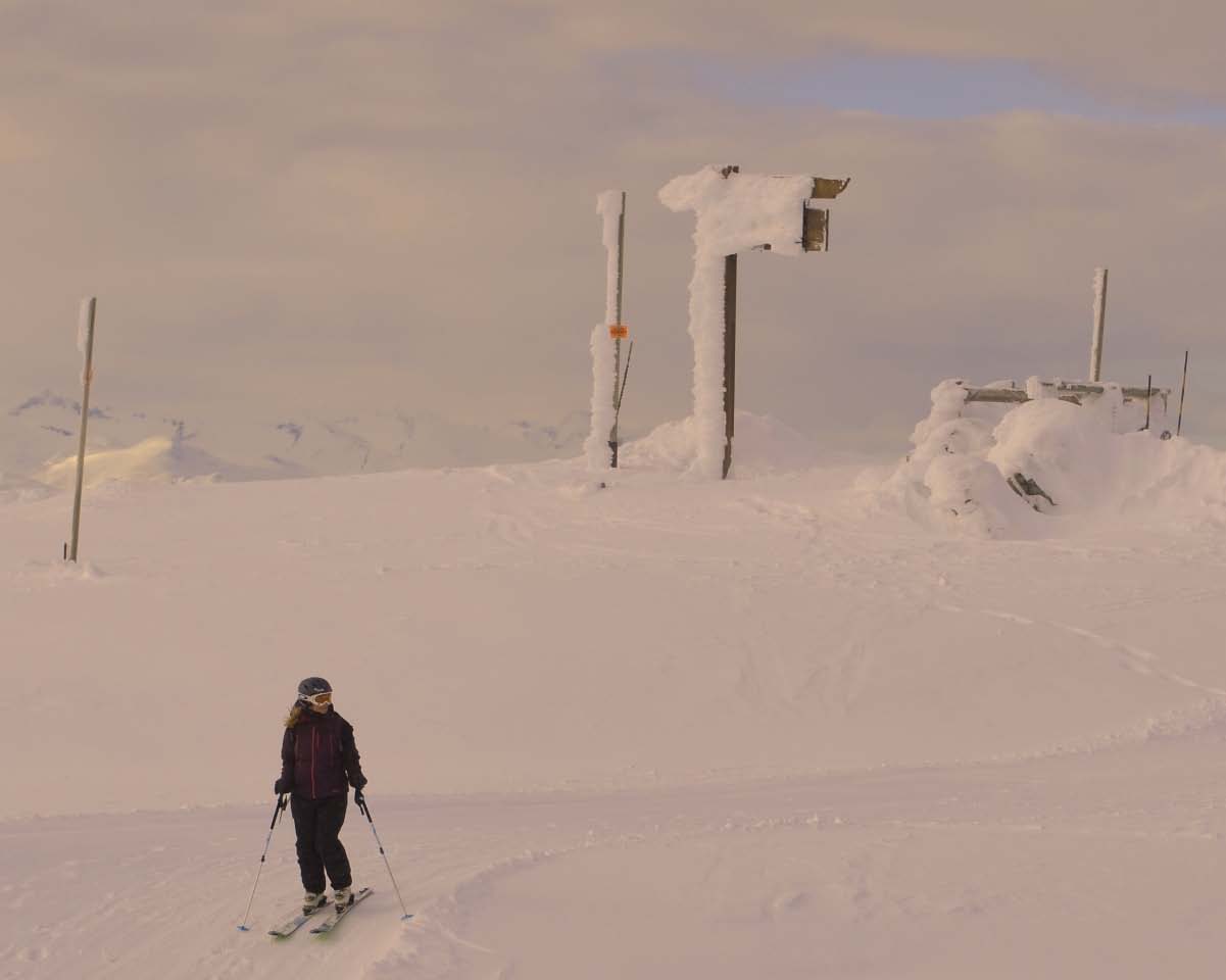 A partly sunny day with good visibility brought out more people from the Village and sometimes 10 minute lift lines. There was another inch of new to refresh and keep things nice - but it's about time we get another big dump. Everything is open and great - but will start to get bony on the ridges after another 4 days of predicted sunshine and cold weather. Creekside ski out is perfect. Still lots of cold fresh powder in the Side Country
