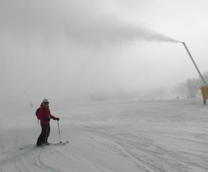 They have 2 gondolas that provide 2000vf each. There were very few skiers and the groomers were fast. Fog covered the bottom 200' feet but burned off by 11:30am. The lower half of three trails had snow-making machines making “fresh powder”. It was different to ski through the fresh snow and cut fresh tracks and then to return and your tracks were covered. We have been spoiled with fresh powder during our 11 days of skiing in the past 14 days. Jill thought I was a bit crazy skiing the powder around the snow-making machines. Do you think a Seattle skier would pass up this opportunity? We are heading home and we are bringing fresh powder to the Cascades. Whoopee.