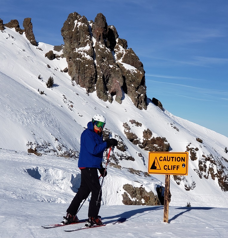 It was a perfect day with no wind, packed powder, and sun. Oh yes! We rode the Cornice Express lift and had great runs down the Zachary and Olympic trails. The packed powder was just perfect. A few folks were climbing up to Glove Rock to get to the remaining powder lines. We rode Solitude, The Reut, and then the Sunrise lift on the backside. The Vista T-Bar was running to provide steep lines in the chutes, The Cirque, and Devil's Corral. At the top of the Sunrise lift there used to be a rope tow for easier access to Covered Wagon Peak. Now it's a long walk or skin out. I spoke to a ski patroller who confirmed that the rope tow was difficult to maintain due to the winds along that ridge. We have toured out past Covered Wagon to Melissa Corey peak for unique and beautiful terrain. We parked about 50 feet from the Cornice Express, and there were only a few other folks enjoying the conditions. Another sunscreen day.