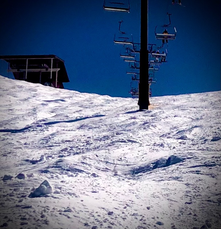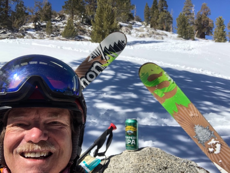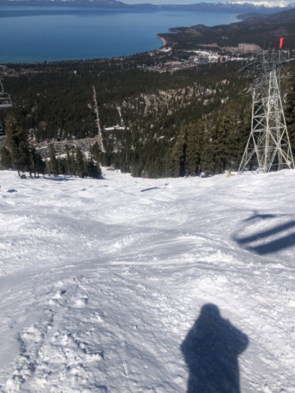 A "normal" California Spring Skiing day ended this portion of our trip. Cold in the morning, and a very nice warming all day, without a cloud in the sky. No Sierra Cement this whole trip! It was such a cold storm, Heavenly pulled a Sun Valley and the snow was good all week! No Stevens/Whistler frozen back sides of the bumps! And the bumps stayed small on the groomed, and soft and big on Waterfall, and Gunbarrel - at least at noon when I skied it! Kathy had another great day traversing the whole mountain, and winding her way down the scenic Roundabout to the California Lodge. Pinnacles is a new run for me and I finally got to ski it, as it doesn't always hold snow well...Very scenic small tree dodging...And I saw where you could drop over to Cali from the top of Olympic! I had never noticed that before. Could be some good storm skiing there!