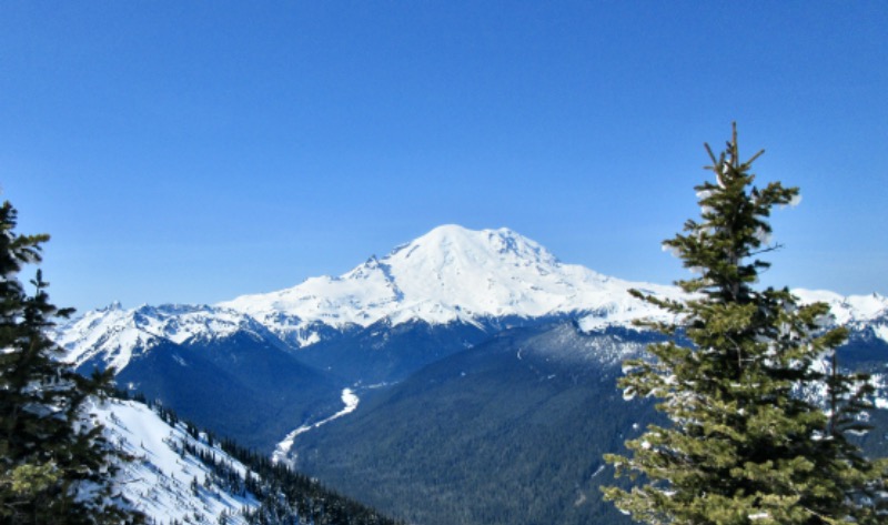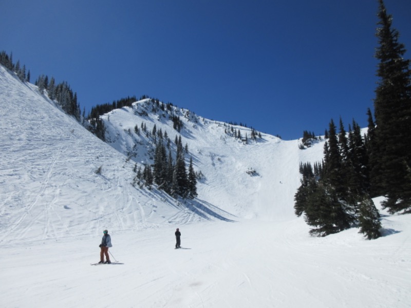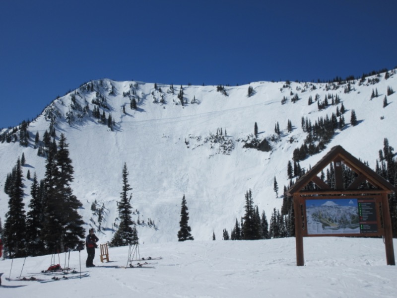 It was another beautiful sunny day in the Cascades. We started skiing a bit after 11 o'clock and the snow was in pretty good shape on the groomers. It got a bit more challenging as the day went on as things got a bit more scrappy in the troughs and piled up spring snow on the moguls. MIFB was a lot better earlier as was Lucky Shot. On Forest Queen Downhill stayed pretty good, Rolling Knolls never really softened. It was a bit firm even at 3 o'clock. Green valley and Sorting Elk skied well The parking lots were pretty full, even D and E but there were never any bad lift lines. Nobody was making it look good on the front side or Powder Bowl. It was definitely worth going.