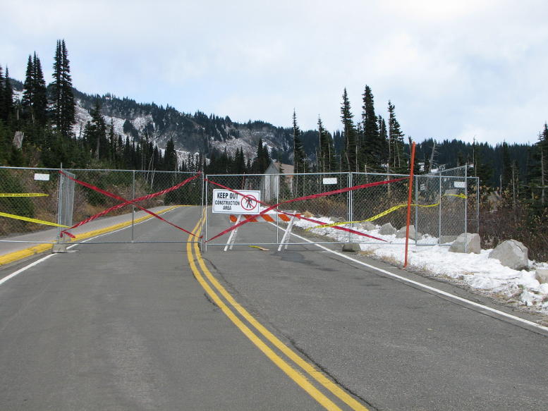 Darryl, Jeanette and yours truly did a recon hike in a location sporting less hostile weather in the vicinity of Paradise on Sunday. Afterwards we took a run up to Paradise to check out the progress on the construction and see if our estimates of the foul weather were on target or not. They were, but I almost drove right through the chain link barrier from mere surprise before I realized it completely blocked the road between the Visitor's Center and the upper parking lot where they are building the new VC.