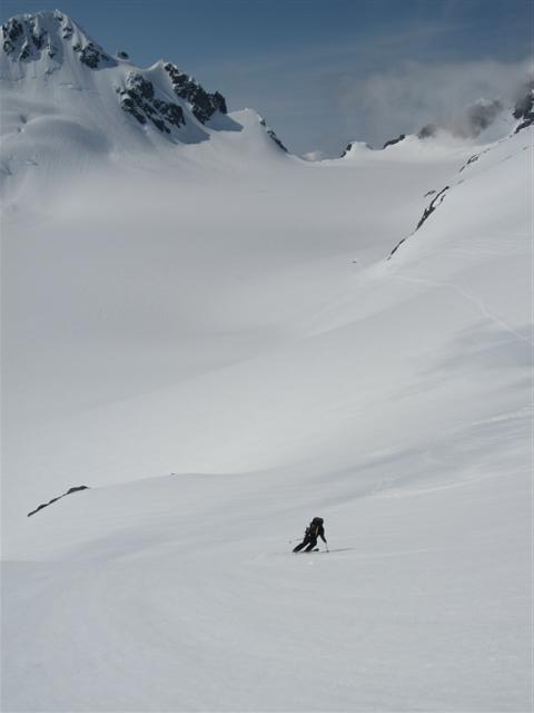 Was just there last week. Everything is still filled in and looking good. Rope up at you own discretion. I saw a few developing cracks, especially back around Benvolio and Overlord. Blackcomb is not running Showcase, so ride up 7th and traverse to the top of Showcase. We stayed out one night and got some skiing in. Mostly great corn and not so great hardpack, depending on the time of day. We had some pseudo-pow on the Ripsaw and Mt. Iago. Most people were not looking for turns, so fresh tracks can be had with minimal variation to the main route. It looks like some nice conditions may develop this weekend with the new snow. We exited over Oboe and Flute. We skied the groomers on Whistler down to "mid-station" (lower than mid-mtn.), which is 2.5km of road walking to the village and beer and burgers at GLC. Actually, we hitch-hiked down and caught a ride after walking 1km. Hope this helps. Get it soon or you'll be walking farther and farther...