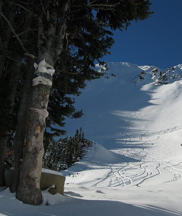 Here's a frontcountry tree at Crystal, not so sexy adorned April-Nov 2007. Where should we be searching for the backcountry tree?