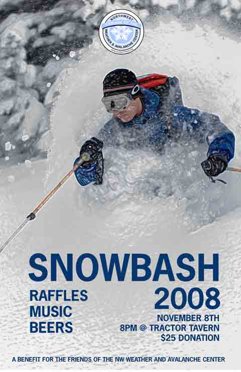 SnowBash 2008 is coming right up! Come on out to kick off the winter and show your support for NWAC at the Tractor Tavern on Sat, November 8 following the Northwest Snow and Avalanche Summit. Good beer, raffle prizes and bluegrass with the Tall Boys. Hope to see you all there. More information on the Friends of NWAC website at
