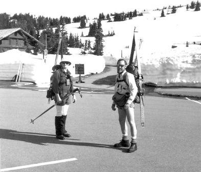 Ok We got two lines of thought going here so I'll chip in on the main one. About two years ago I had the good fortune to ski with Summer backcountry Ranger Casey at Sunrise and again the next year. Also quite a nice guy and helpful besides being on the rescue squad up. Some where I'll drag out a picture from about 12 yrs ago when sunrise was opened up with 5' of snow around the restrooms. July 4th 1997.Let's see here it is.