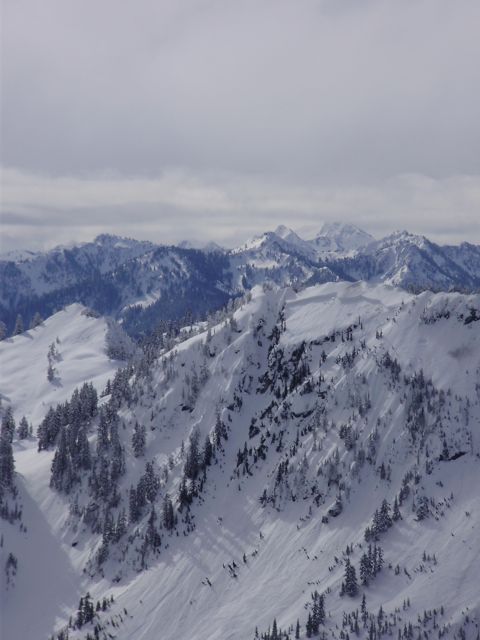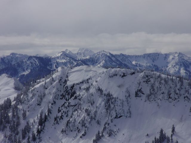 Heli dropping big charges on Rooster Comb/Cone? Thurs 3/26/09 AM. Nothing really moved until the second round, then a HUGE one let go on the East most peak on that ridge. this crown looked as big as the bird or bigger, but it was hard to judge scale from the top of Tye Mill.