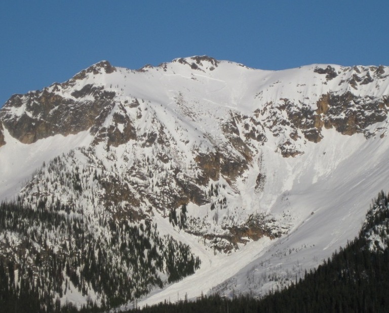 picture is taken across valley (mt hardy shoulder) from peak 7340 up Swamp Creek, slope is WSW facing, many substantial sluffs also observed