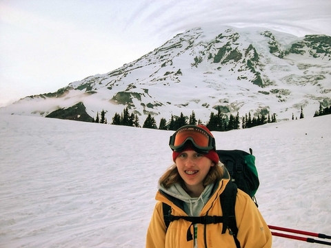 2007 - Climbed Mt Adams. She summitted faster and in much better shape than me. And she glissaded down faster than I could ski down.
