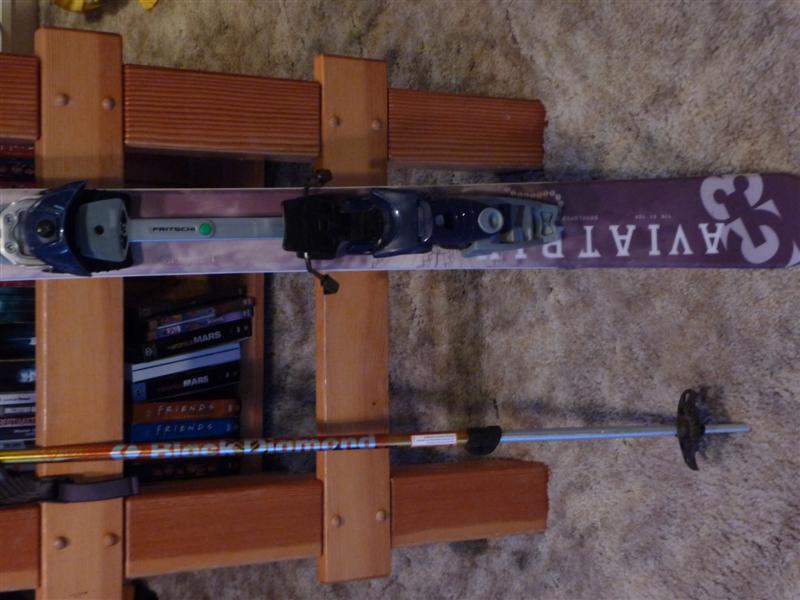 My family and I skied North Twin Sister on June 12. We had a great trip but we did run into some avalanche problems. My wife wasn't too keen about skiing down the snow face and so she left her ski's at the bottom of the hill. Unfortunately we triggered some avalanches that ended up burying her skis at the bottom of the hill. We were able to recover one ski and one pole but there is still a ski and pole missing. If anyone happens to come across this ski as the snow melts, please let me know. I have included pictures of the ski and pole. Of course the ski did have a skin on it, so now my wife has one ski, one skin, one binding, and one pole.