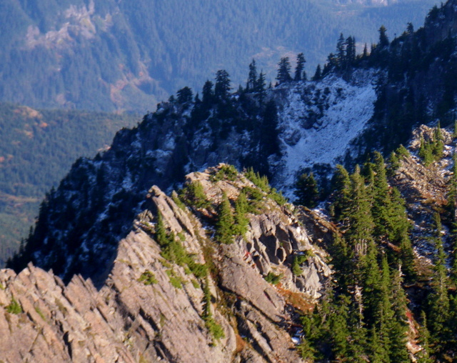 The going was rather slippery in shady bowls at Snoqualmie, with ~1/4"+ of powder on talus.