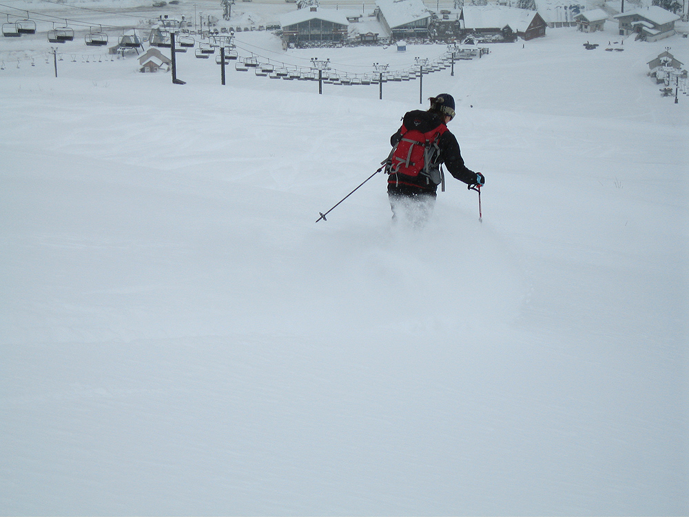Stay on the previously groomed areas if you want to have any hope of reaching the bottom . . . but the snow quality is top notch.