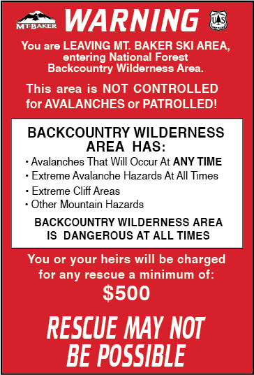 However, I'd be in favor of all ski areas adopting the same BC gate policy as Mt. Baker: No beacon/shovel/probe/partner/knowledge? No exit or re-entry. And post some big, ominous signage too.
