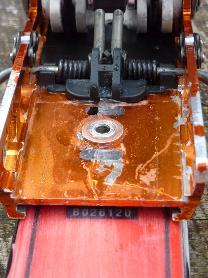 I changed the mounting from the stock setup that Wasatch provides. I mounted the Dynafit toe in it's usual plastic plate, then put a set of inserts in to mount the Hardwire cable to the ski deck. Also mounted the heel piece with inserts and will be adding anothe set of inserts to the heels so that I can swap out a Dynafit heel on the same ski. The original mounting plate provided puts the whole setup very heel-high, which I figured I wouldn't like much. This setup will give me AT & Tele on the same ski (though if I get the TTS dialed in, I probably won't use the AT much). The other advantage to using the stock Dynafit toe plate is that my ski crampons still work, albeit with some holes drilled into them to accomodate the hold-down blocks for the Hardwire.