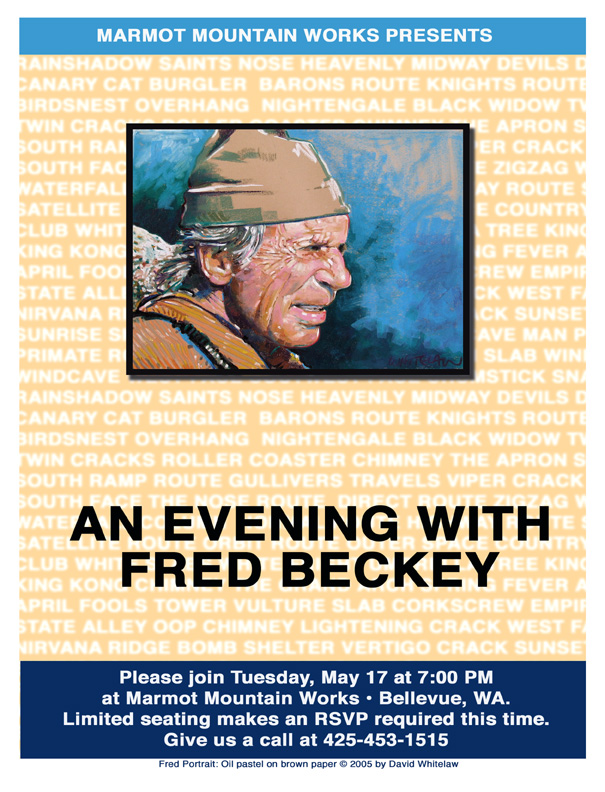 Replied by cchapin on topic Re: Fred Beckey at Marmot Mountain Works 5/17/11 @ 7pm