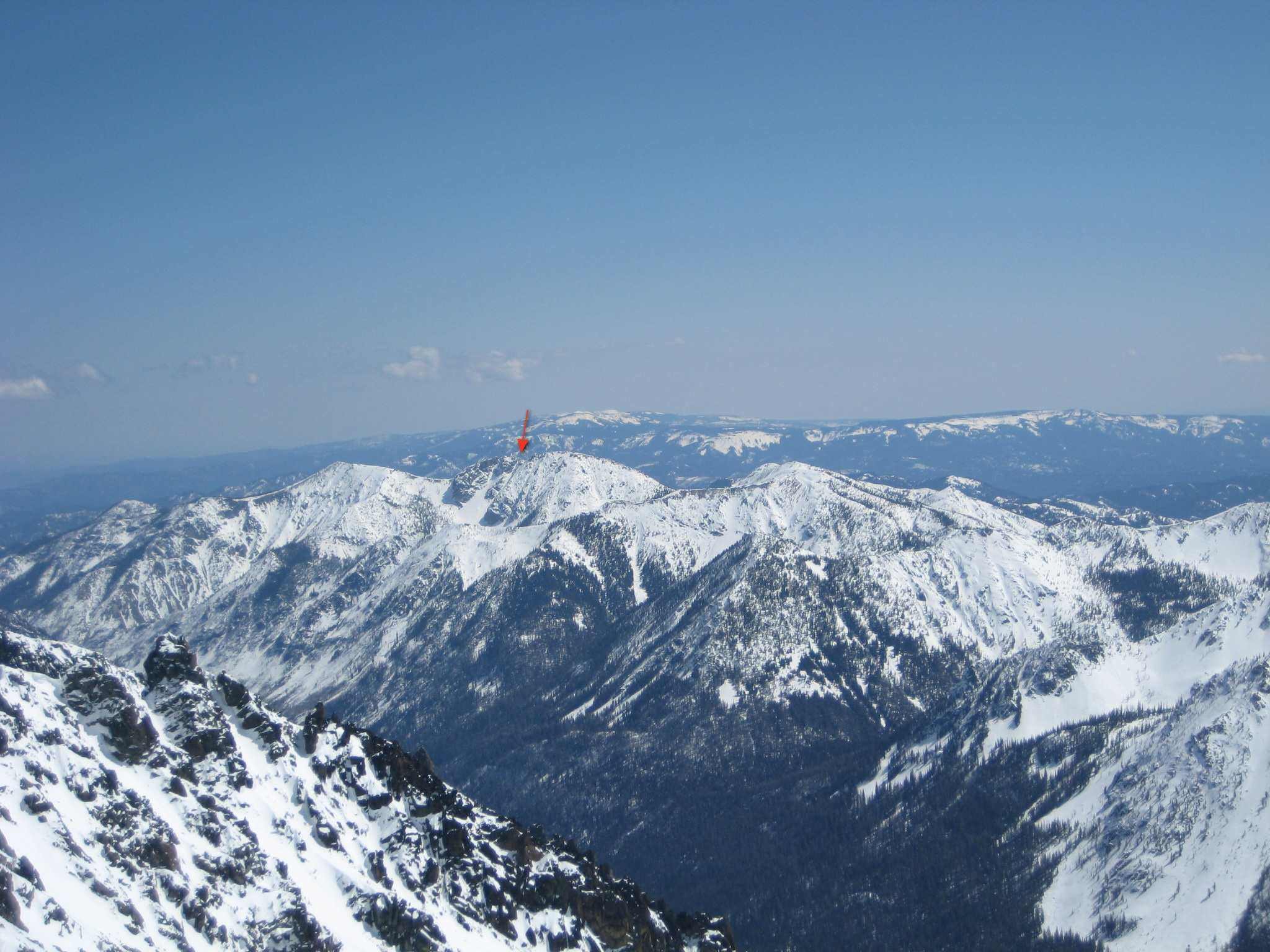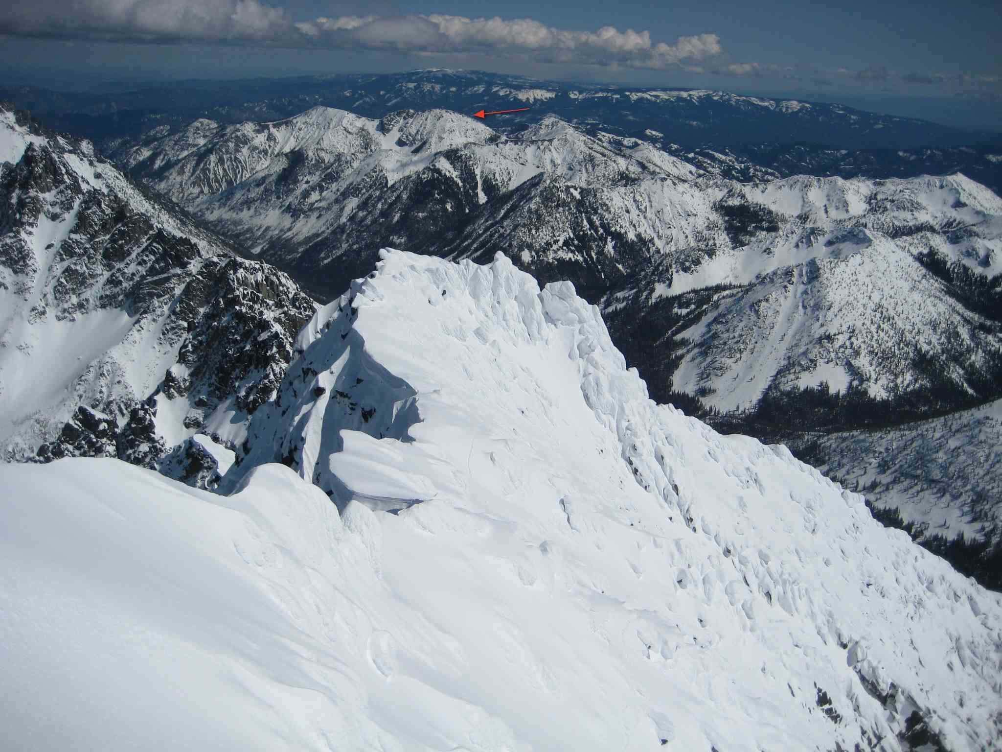 As long as we're playing "Name That Peak", anybody know/ever skied this one (E of Teanaway Peak)? The ski line in the pic (taken from Stu) appears to go all the way to Ingalls Creek.