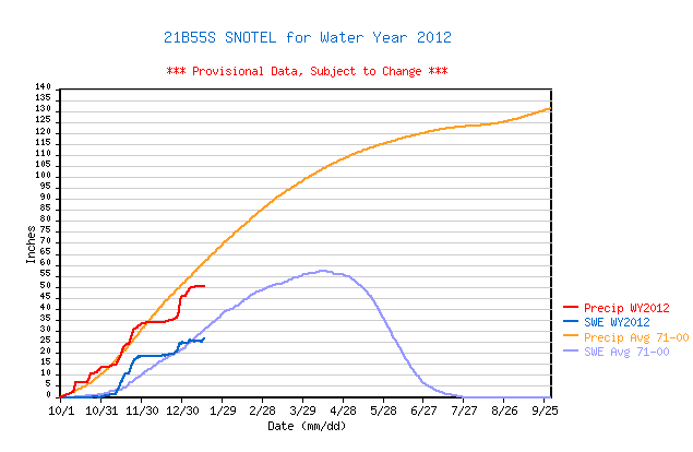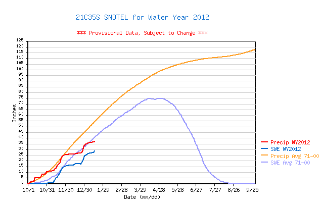 So that makes up most of what appeared to be 7-8" below the average. Coincidentally, the Paradise SWE on January 23, 2011, was 38.2", within 0.1" of today's value.