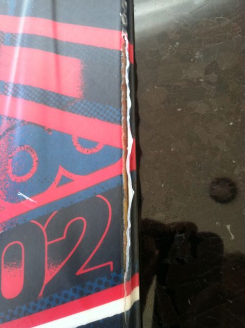 As I was putting my skis into the car the other day I noticed an unsightly gash in the topsheet of my brand new Coombacks along the corner where the topsheet rolls over to the edge. The core is not exposed, it's only the topsheet that has delaminated. I have no idea how this happened. My question is: do I shave off the remaining laminate and epoxy the wound, or do I try to adhere the topsheet back to the ski?